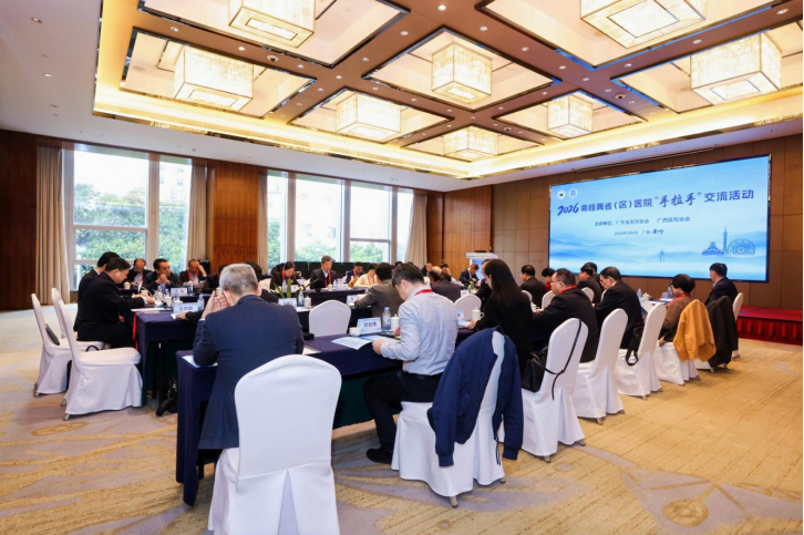 2026年1月9日,由广东省医院协会与广西医院协会联合主办的“2026粤桂两省(区)‘手拉手’交流活动在广西南宁顺利举办。来自粤桂两地医院30多名管理领域专家、医疗机构负责人齐聚一堂,围绕区域医疗建设、DRG付费改革、医院高质量发展等议题展开深入交流,为粤桂医疗协作与创新发展凝聚共识、汇聚力量。